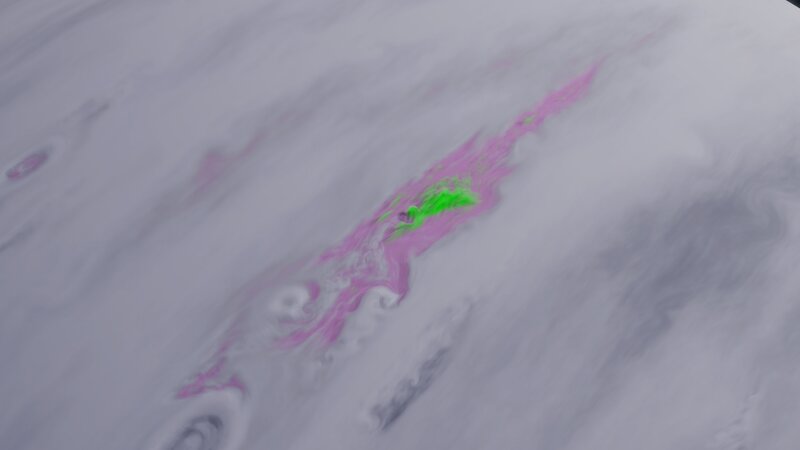 when approaching it in supercruise, you can notice some pink clouds with small green zones: