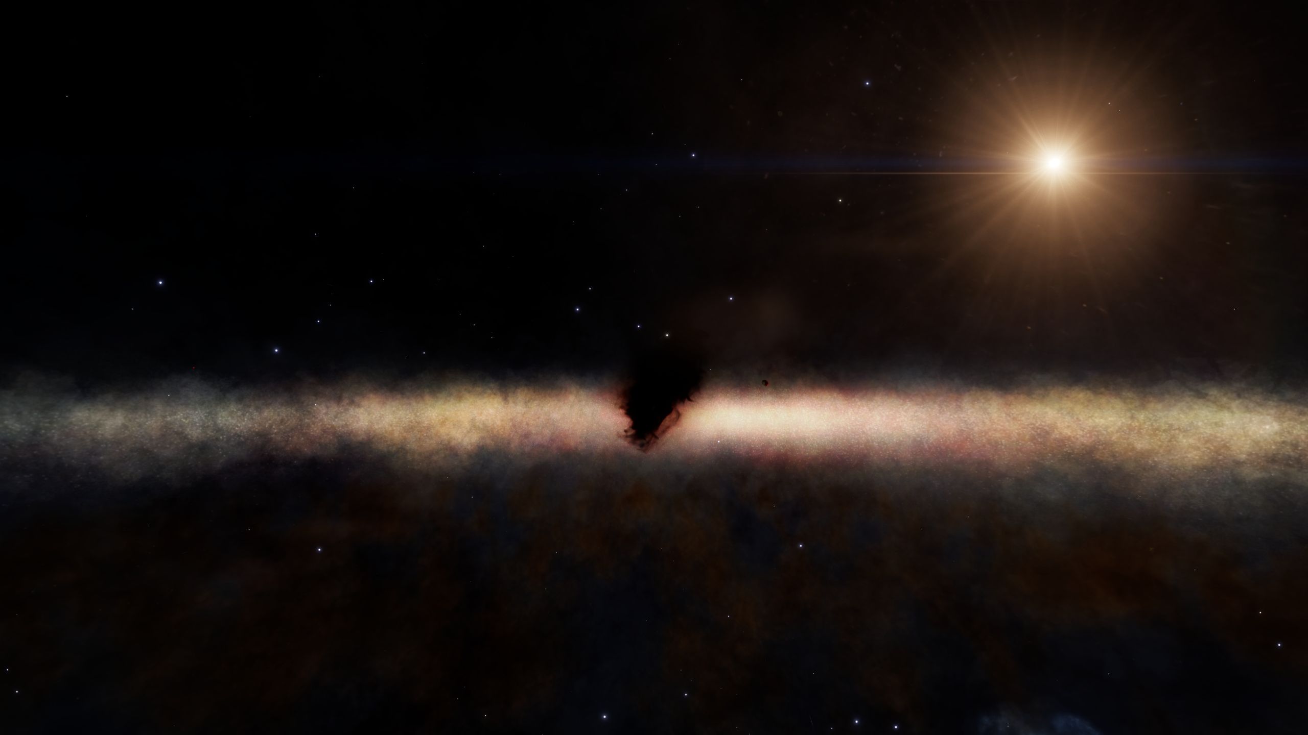 Description: The Crooki AA-A h1 nebula, nicknamed the Lonely Lantern nebula, is the westernmost one in the galaxy. It's a dark cloud that's not much larger than most planetary nebulae though. There are no stars inside of it, so it can only be viewed from the outside. However, as it's a dark cloud that's 700 ly above the galactic plane, it's usually only visible if it's viewed with the Milky Way behind it.