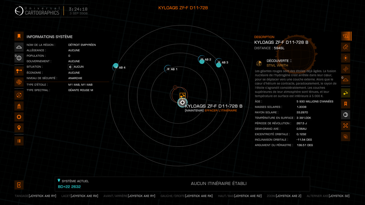 Description: The two class M giant are somewhat close to each other (594 ls) and have 5 landables bodies orbiting both of them: From their surfaces, the view of the other planets is quite impressive, especially when you have the two stars visible as well. View from AB 3: View from AB 1: | |