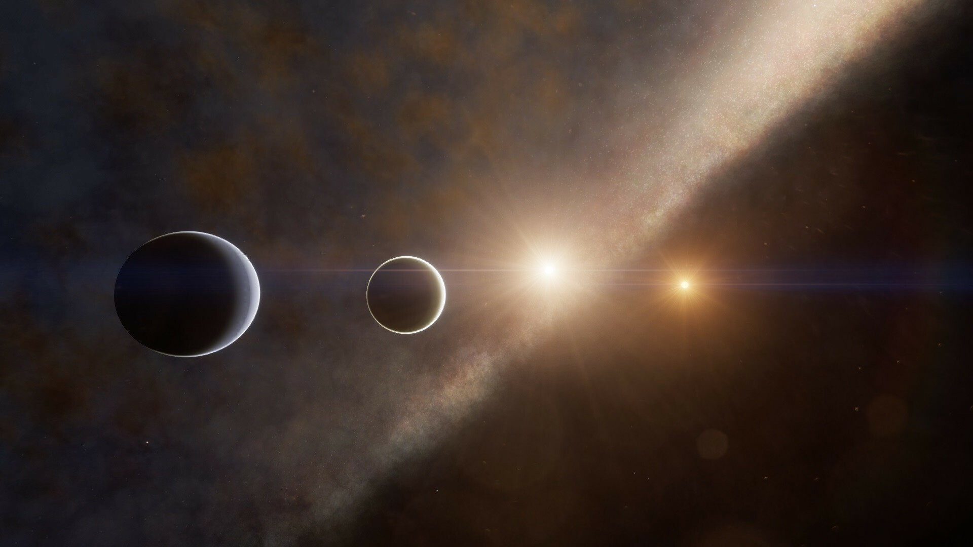 Summary: A close binary pair of gas giants high above the galactic plane, guaranteeing beautiful views. | |