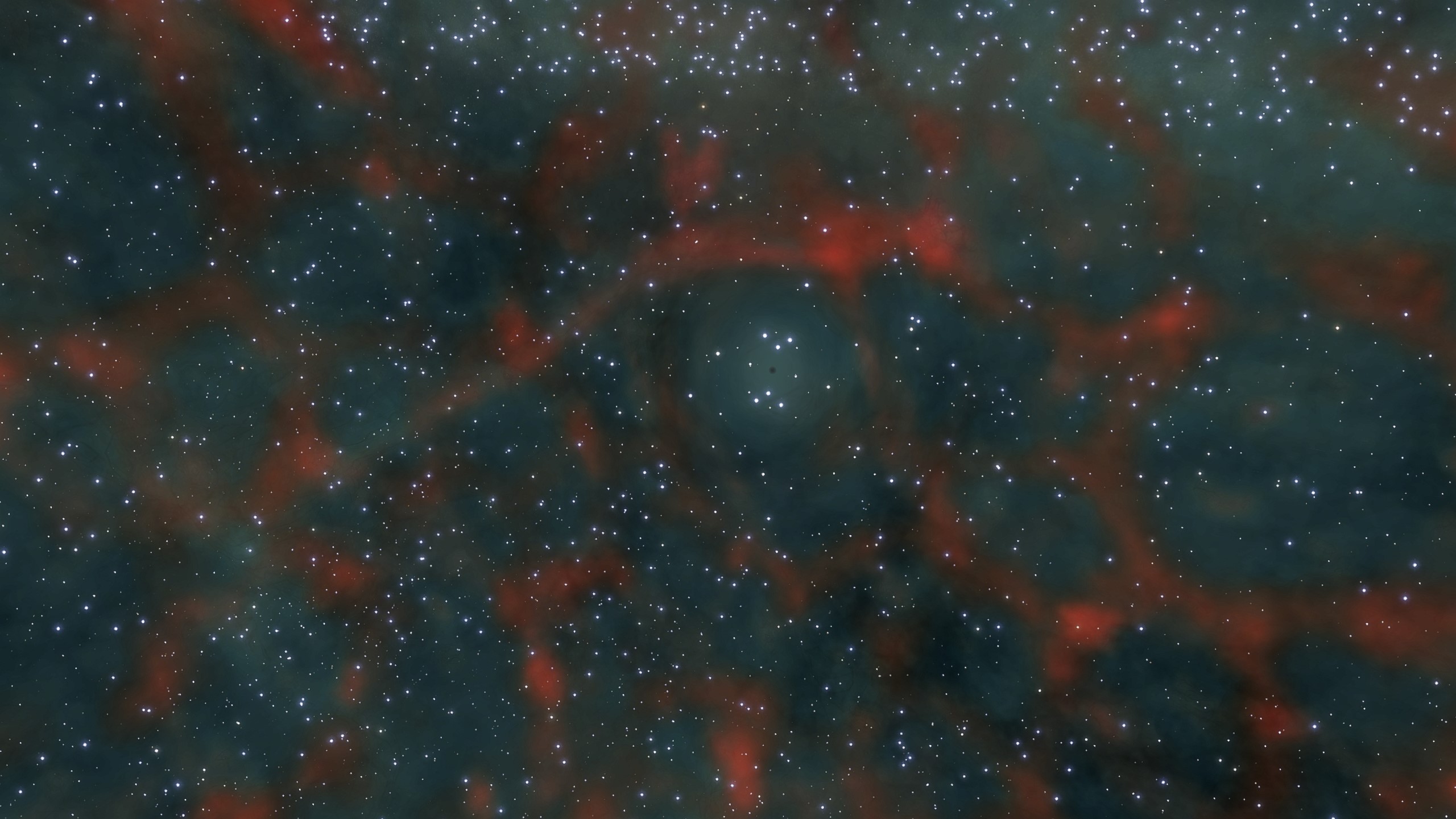 Description: When approaching this star system, the planetary nebula that's the remnant of a supernova is visible from afar. Once inside, there are two dwarf stars orbiting the remnant black hole. Both of them have many satellites, plenty of them landable. One of the moons has a thin atmosphere, and its surface offers an incredible of the many stars of the galactic core, viewed through the planetary nebula left after the supernova. | |