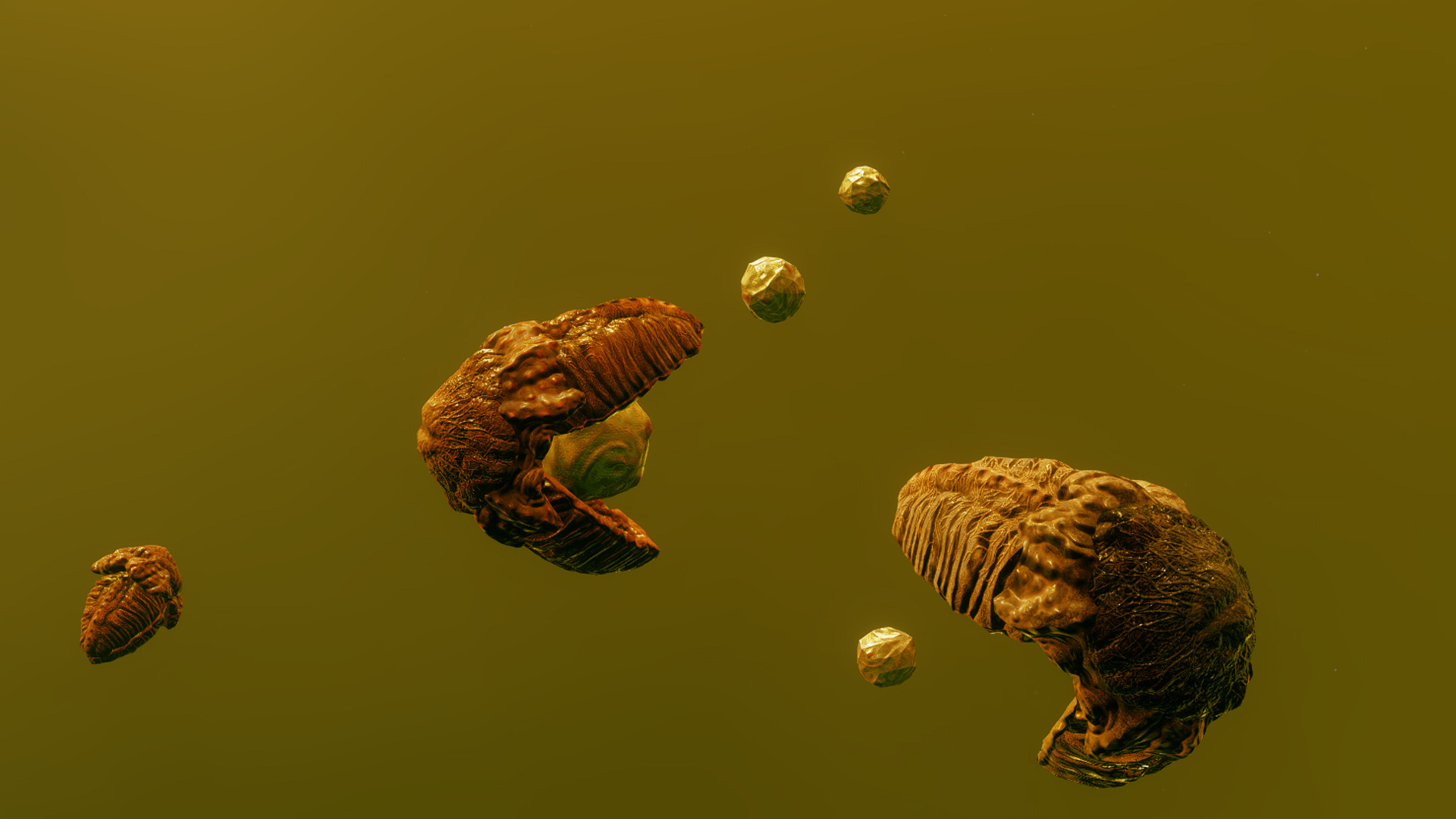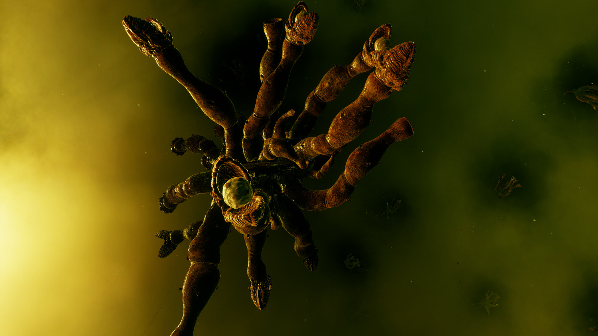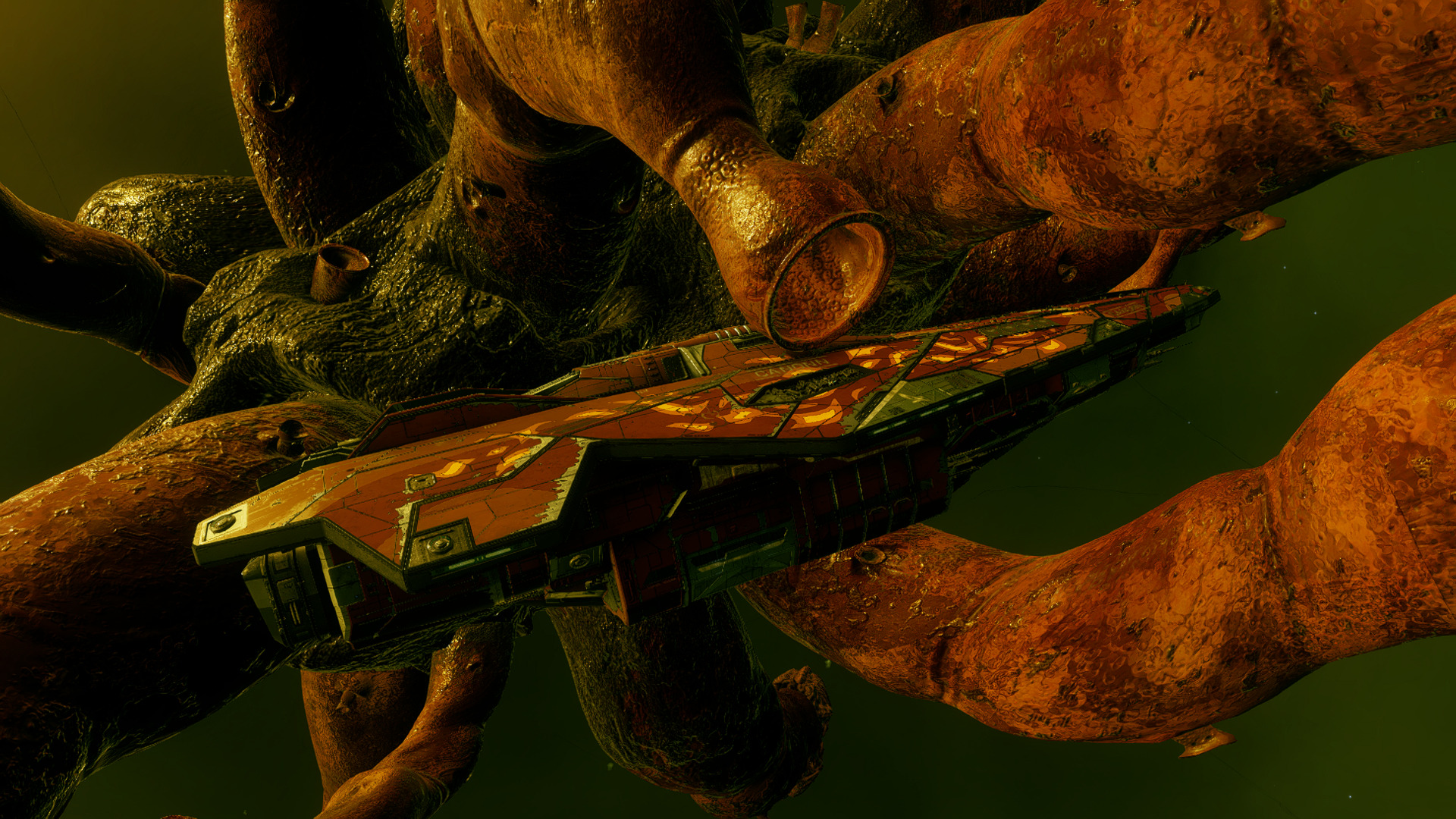 Description: This is one of two systems containing Stolon Trees and pods. Its twin Alastor is in the nearby nebula and is the home of the DSSA Solsen's Alastor, which occasionally will make the short hop between the systems. The system hosts several scenic views featuring the nearby nebula. There are two Notable Stellar Phenomena in the system. The nearest to the main star has a Viride Lagrange Cloud, which when lit by the star can appear in a vibrant yellow. The Stolon Trees are very much larger than even a ship like the Anaconda. They have multiple arms with a hinged container for the pod. The pods may be found floating free, with or without the container. They have several distinct states: they may be open or closed, and they might carry a "pearl" or be empty. (See a video here.) Research limpets can also be used to retrieve samples from these seed pods. The second Notable Stellar Phenomena signal is inside the rings of planet A 7 and contains an unidentifiable Ice Crystal that can cause a temperature drop if closely approached. When composition scanned, no identification is presented and no entry logged to the ship's computer. The crystal is similar to the Purpureum Ice Crystal, but has many extra spikes compared to it. Planet B 5 contains surface life in the form of Crystalline Shards, which can be shot to release Antimony. In fact, Asterius is a so-called "green" system, meaning all materials can be prospected from the surface of the bodies here. Many of the materials can be found around volcanic features, making them easy to collect. The shards are challenging to locate, but can be found near latitude 3.48163, longitude 12.79011 | |