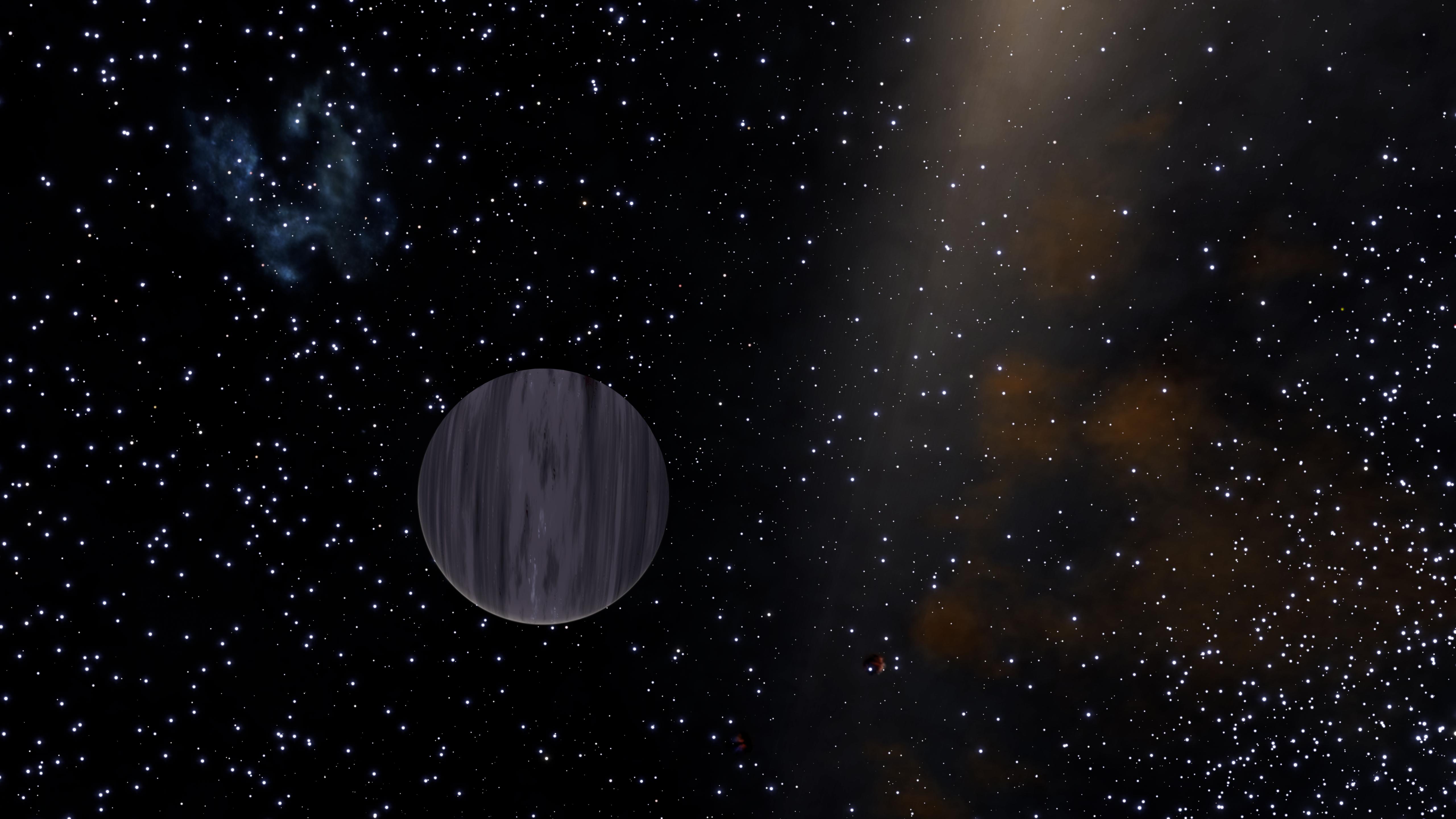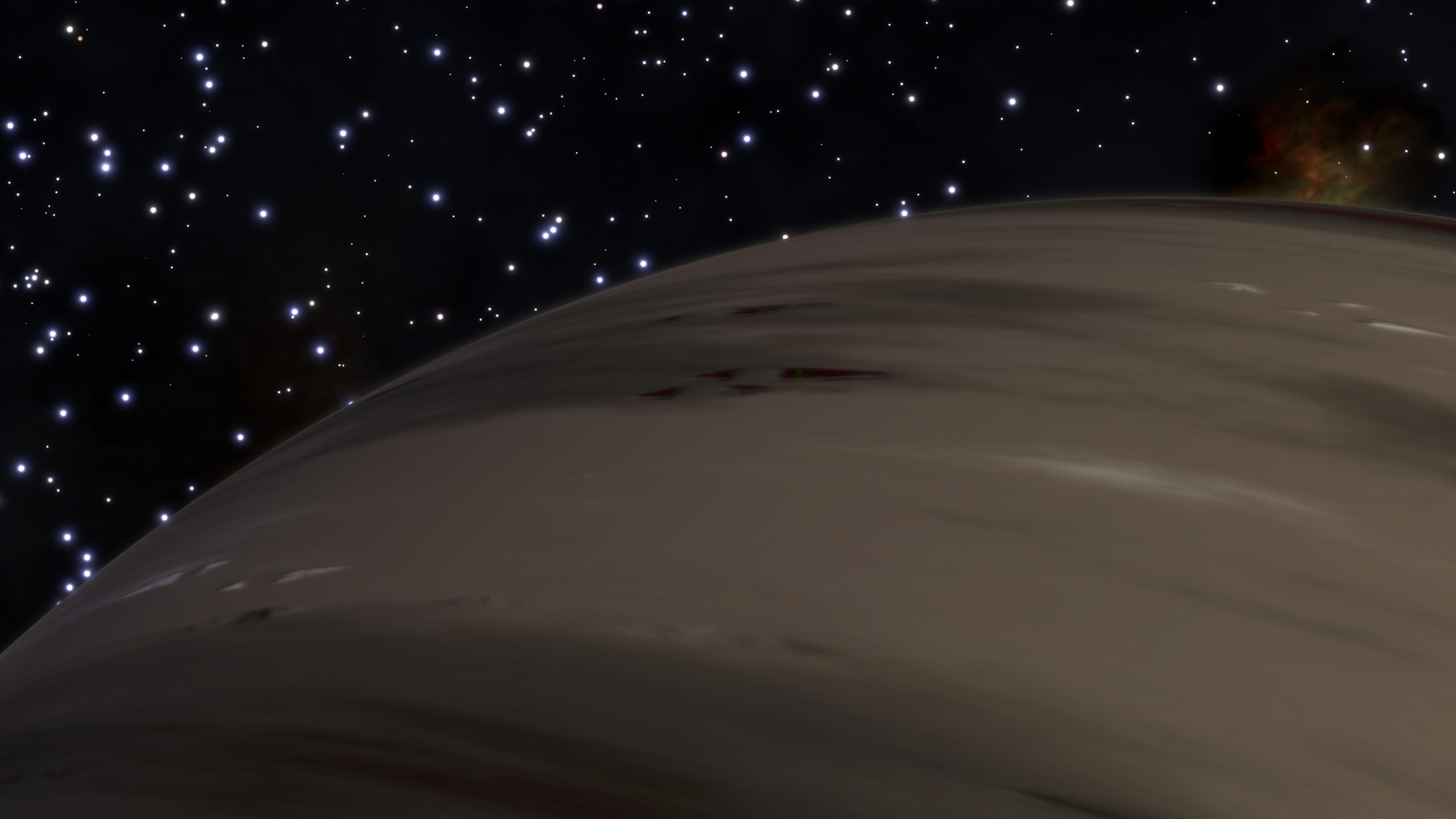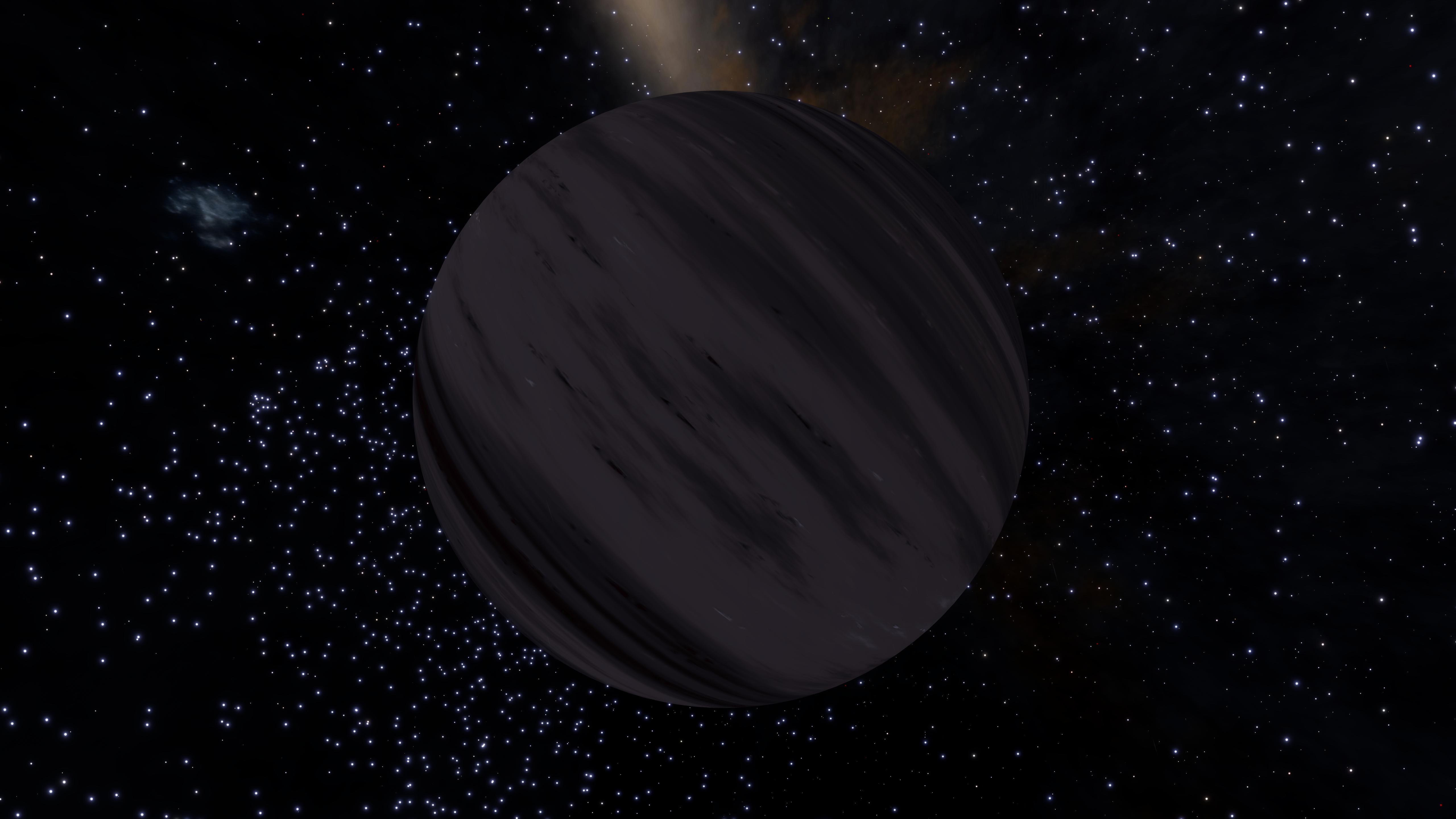 Description: The first planet of this system is a beige Class I gas giant with maroon spots and stripes containing tiny specks of bright green. The view from the planet is impressive, though, making it a worthy stop if you're headed towards Colonia from the western reaches of the galaxy. The name "FĂnleiki" is Icelandic for "Subtlety". | |