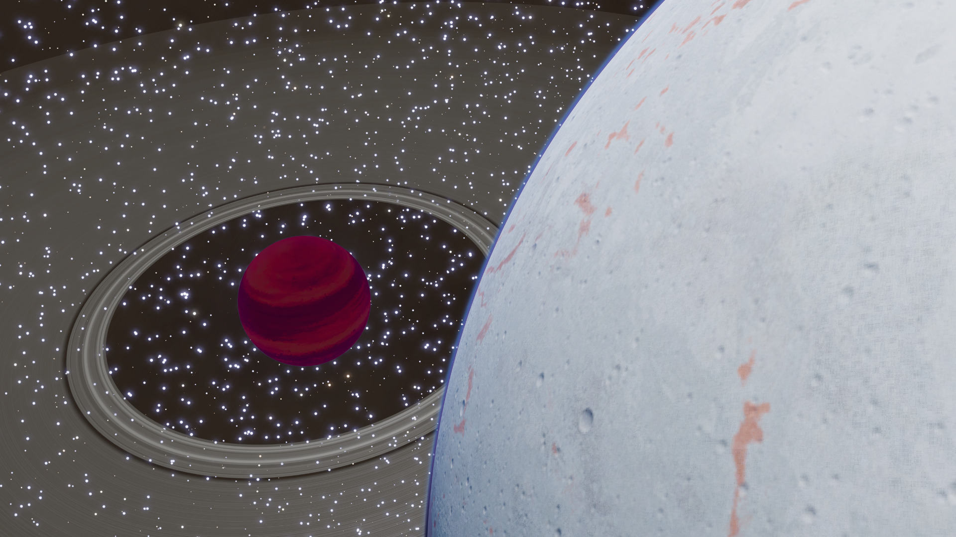 Summary: A thin oxygen atmosphere moon on a mighty eccentric orbit around a ringed Class Y dwarf star. | |