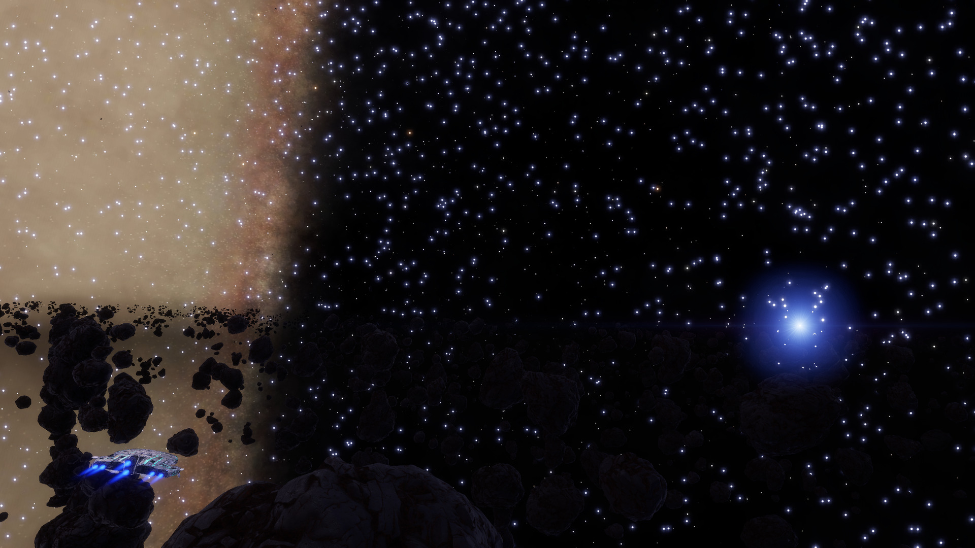 The system's neutron star is a 0.71 solar-mass body with three distinct rings. Pilots are advised to approach with extreme caution due to the radius and low visibility of the outermost ring. It extends from 62 light-seconds to an incredible 250 light-seconds. The middle ring begins about 1,000 km beyond the inner ring and extends to 2.7 million km. The innermost ring begins 100 km from the star's surface and extends to about 172,000 km. The A and B rings are rocky while the C ring is metal rich. They contain 0.012, 2.98 and 64.7 lunar masses of matter, respectively; for comparison, Earth comprises about 81.3 lunar masses. Particularly dedicated pilots can scan the A ring to find an alexandrite hotspot, though this requires avoiding the ring and diving perilously close to the neutron star's exclusion zone. Video: Cthulhu's Slumber Neutron Star The neutron star's rotation is also anomalous at a whopping 81.7 years. Possible explanations for this extremely slow rotation could include a lack of rotation in the star preceding its supernova and tidal interactions with its ring system. It's also possible that close interactions with the central black hole earlier in the star system's history could have slowed the neutron star's rotation.